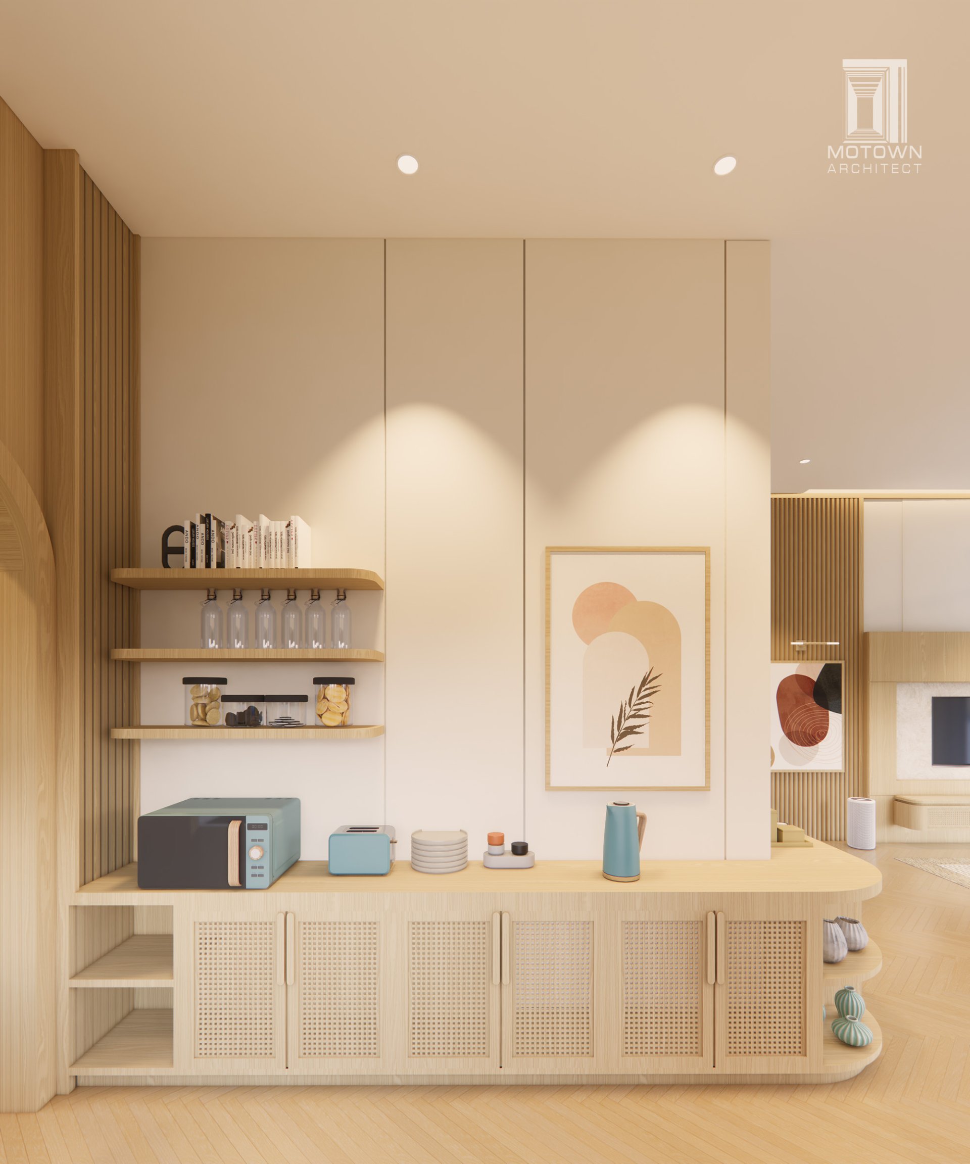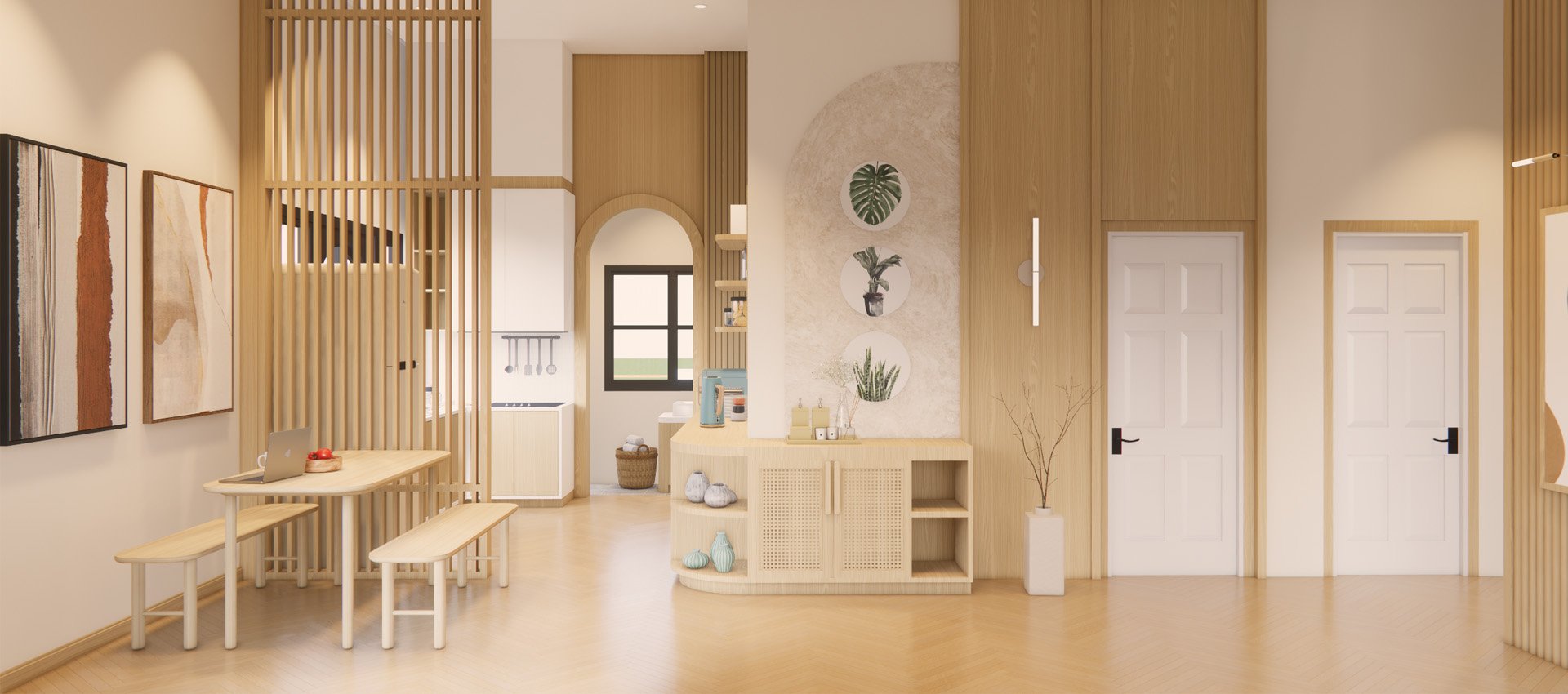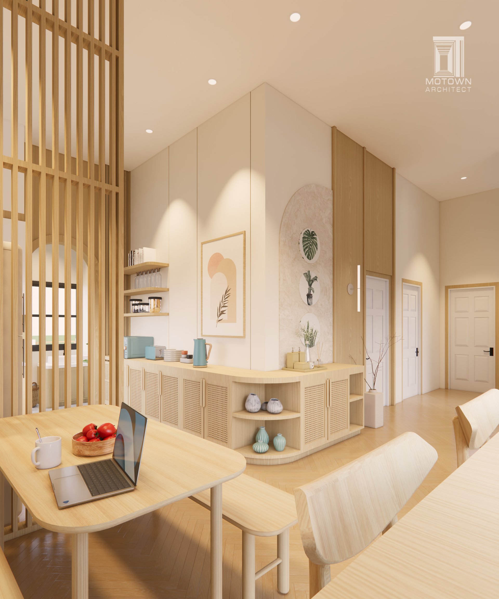 การออกแบบภายในบ้านพลูวิลล่าชั้นเดียวหลังนี้ถูกออกแบบมาเพื่อรองรับกลุ่มเพื่อนหรือกลุ่มนักท่องเที่ยวที่ต้องการความสะดวกสบายและบรรยากาศที่ผ่อนคลายสำหรับการพักผ่อน โดยเน้นการออกแบบที่เรียบง่ายแต่มีสไตล์ ที่ช่วยให้ทุกคนสามารถเพลิดเพลินกับการใช้เวลาร่วมกันในบรรยากาศที่อบอุ่นและสบายๆ ด้วยการออกแบบที่มีกลิ่นอายของสไตล์มูจิ